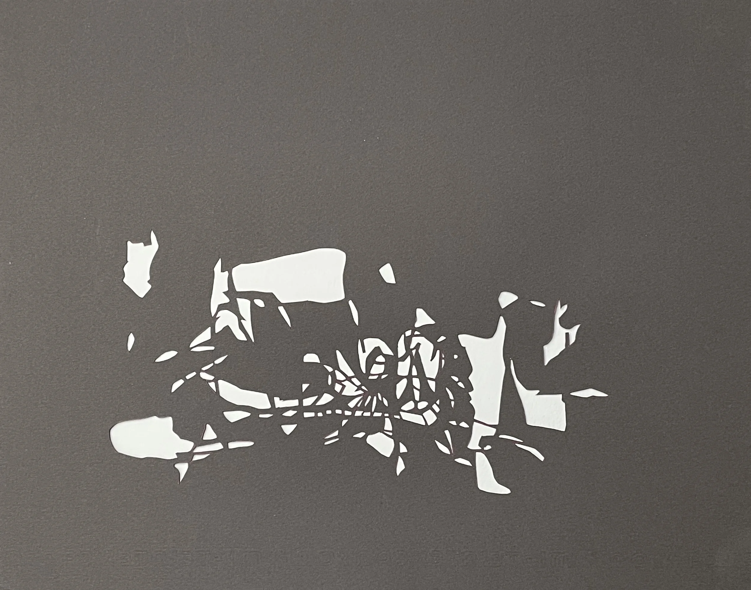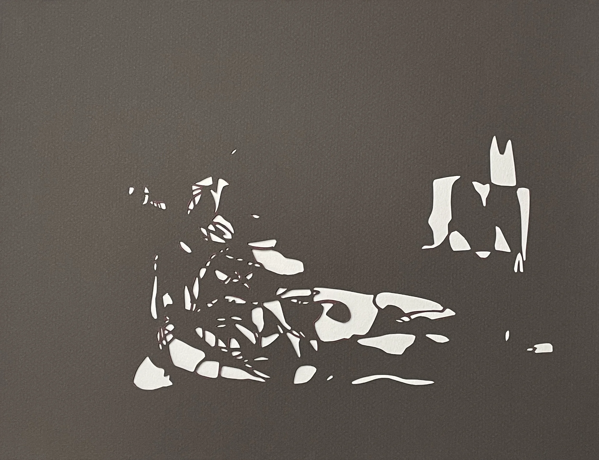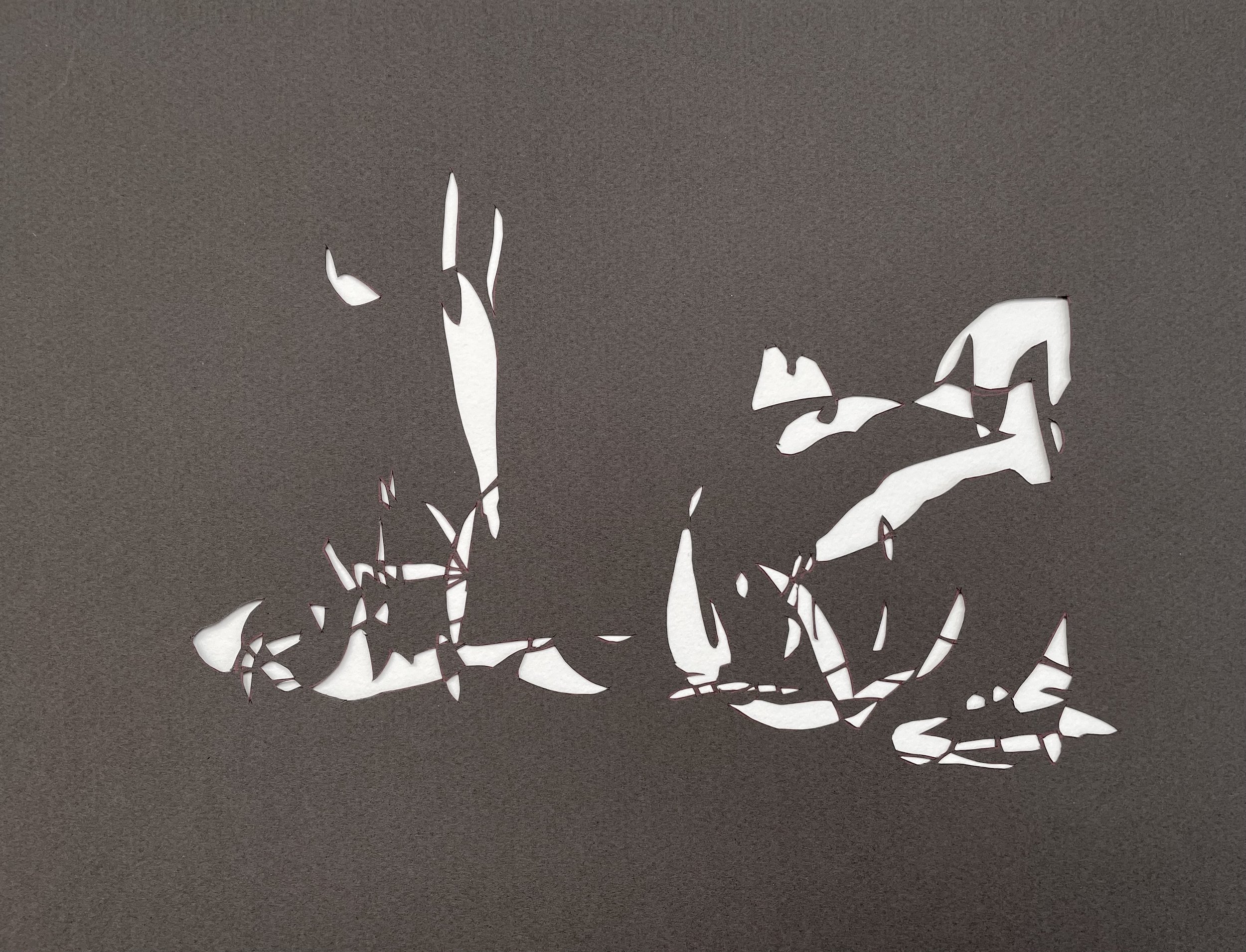 Cut paper silhouettes borne from drawings connected to the feeling and activity of processing loss speak to absence and presence…being and nothingness…and recovering joy.